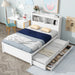 Full Size Platform Bed With Trundle, Drawers, USB Ports And Built In Shelves - White