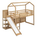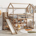 Twin Size House Loft Bed With Slide, Storage Shelves And Light, Climbing Ramp - Wood