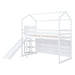 Twin Size House Loft Bed With Slide, Storage Shelves And Light, Climbing Ramp - White