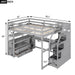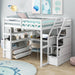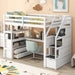 Full Size Loft Bed With Desk, Shelves, 2 Drawers, Storage Staircase - White