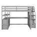 Full Size Loft Bed With Desk, Shelves, 2 Drawers, Storage Staircase - Gray