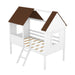 Twin Size Low Loft House Bed With Two Side Windows - White / Brown