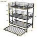 Twin Size Triple Bunk Bed With Trundle, Steel Construction With Heavy Duty Support And Secure Guardrails - Antique Black