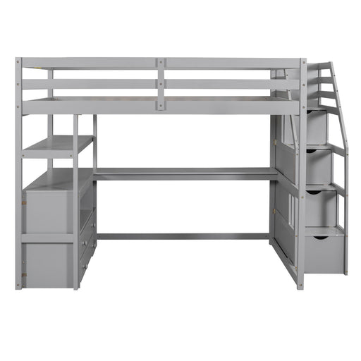 Loft Bed With Stand Alone Bed, Storage Staircase, Desk, Shelves, And Drawers