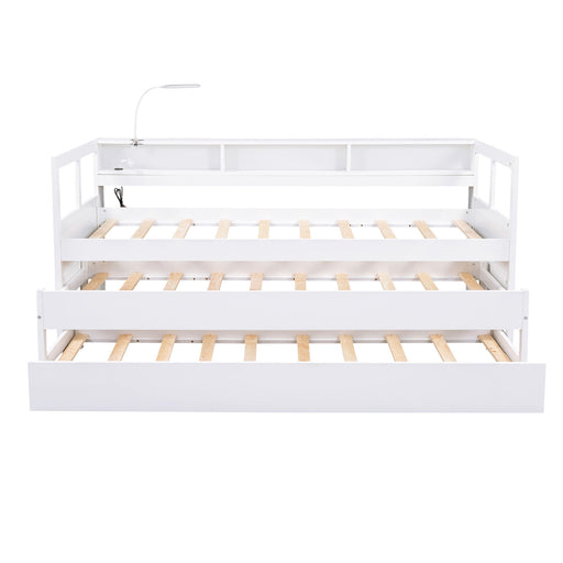 Daybed With 2 Trundles, 3 Storage Cubbies, Built In USB Charging Light