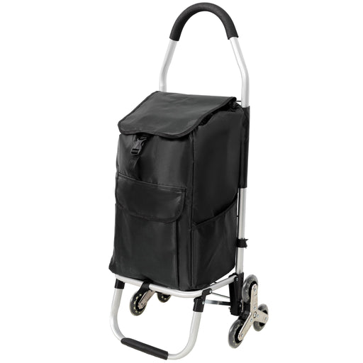 Foldable Shopping Stair Trolley With Triangular Wheels And Removable Waterproof Bag - Black