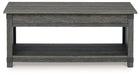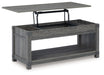 Abra la puerta al estilo moderno de una casa de campo con esta mesa de centro elevable. La hermosa apariencia de madera veteada y los detalles clásicos de metal cruzado son un toque genial, mientras que el estante inferior brinda espacio en la superficie para accesorios de moda para el hogar. Con un efecto de veta de madera replicada en gris, su práctico mecanismo de resorte acerca la mesa a usted. Esta mesa versátil hace que sea más fácil que nunca comer, trabajar o jugar desde la comodidad de tu sofá.