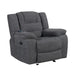 The Redondo Glider Recliner offers soothing heat and massage therapy, wrapped in ultra-soft, easy-care dark gray polyester fabric. Built on a durable hardwood and plywood frame with resilient springs and plush foam cushions, it delivers lasting comfort and support. Enjoy smooth reclining motion and indulge in therapeutic relief at the touch of a button—perfect for relaxing at the end of the day in total comfort.