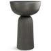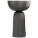 - Hand-finished in Black Nickel with a subtle texture on the tabletop and vertical lines on the base that make each piece unique.