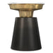- Features spacious round white marble tabletop, gold powder coated stem and black powder coated pedestal base