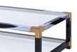 - Modern Design: This sleek occasional coffee table features a clear tempered glass top and shelf, providing a modern touch to any living space with its open compartment and glassy bottom shelf.