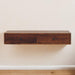 - Lunar 2 Drawer Chestnut Wall Mounted Console - Sleek, space-saving, and effortlessly stylish, this wall-mounted console is handcrafted from 100% Solid Mango Wood in a rich chestnut finish. Featuring two compact drawers with classic knobs, it offers discreet storage while maintaining a clean, modern aesthetic. Perfect for use as a minimalist bedside table, entryway organizer, or workspace accessory, its floating design enhances functionality without compromising on style. Durable, sustainable, and versatile, this handcrafted piece is ideal for contemporary interiors that value both form and function.