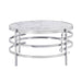 Chrome Round Coffee Table With Sintered Stone Top & Sturdy Metal Frame, Modern Coffee Table For Living Room - Silver