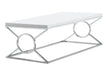 • Stylish Design: This coffee table features a thick and spacious glossy white tabletop, complemented by a solid chrome metal base. The distinct circle and x-leg side supports add a contemporary flair with classic appeal.