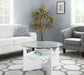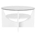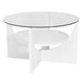 - Unique Design: The U-Shaped coffee table features a circular glass top and a seemingly floating circular shelf, creating a distinctive and stylish appearance for any living space.