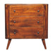 • Solid wood Bera Chest 3 Drawers - The Bera Chest is ideal for adding a contemporary style to any bedroom. It is perfect for maximizing space while staying on trend with 3 spacious drawers. It is constructed from 100% solid mango wood in a chestnut finish and nordic style legs, with shiny brass knobs on the drawers.