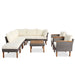9 Piece Patio Rattan Furniture Set, Outdoor Conversation Set With Acacia Wood Legs And Tabletop, PE Rattan Sectional Sofa Set With Coffee Table, Washable Cushion