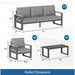 4 Piece All Weather Ultra Patio Furniture Set, 5 Seat Conversation Sofa With Thick Back Cushions And Table - Gray