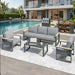 5 Piece 7 Seat Conversation Sofa All Weather Patio Furniture Set With Thick Cushions And Table - Gray