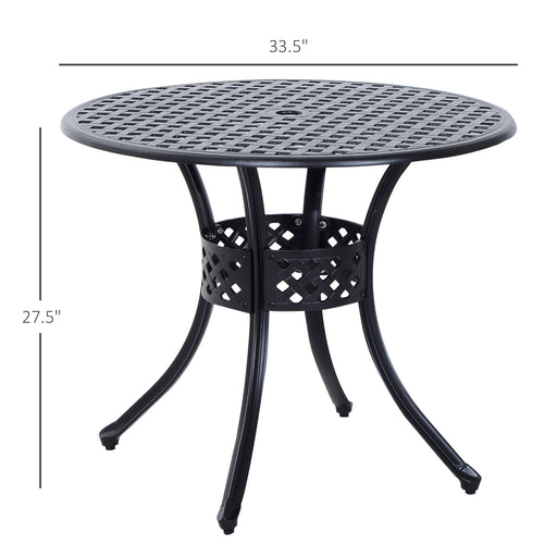 Outsunny - 33" Patio Dining Table Round Cast Aluminium Outdoor Bistro Table With Umbrella Hole - Black