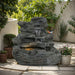 4 Tiered Rock Waterfall Fountain With LED Lights, Outdoor Garden Decor, Weather Resistant - Gray