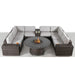 - Complete Outdoor Set: 12-piece group includes 2 modular sectionals, 1 sofa, fire pit, and 18 thick cushions.