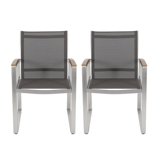 Poetic - Outdoor Dining Chair With Faux Wood Arms And Aluminum Frame (Set of 2) - Gray
