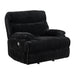 Let the Admiral Motion Recliner in Masis Black cradle you in unprecedented comfort. Upholstered in a plush, ribbed fabric and filled with supportive cushioning, this piece is made to enrich even your longest moments of repose. Manual reclining functionality enhances relaxation, while padded pillow top armrests are ideal for lounging. The versatile and sleek black finish pairs well with various décor styles and is forgiving to staining, while framing of quality engineered wood enhances durability. For a piece as versatile as it is comfortable, outfit your living space with the Admiral Motion Recliner in Masis Black.