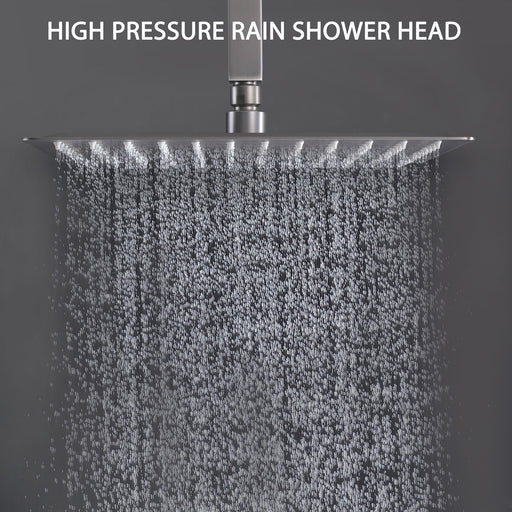 16" Square Rainfall Shower Head Fixed Wall Mount With Full Body Coverage & Self Cleaning Silicone Nozzles