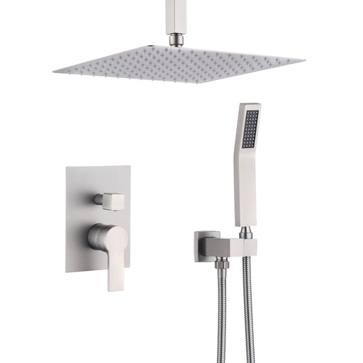 Luxury 12" Ceiling Mount Rainfall Shower System With Brass And Stainless Steel - Brushed Nickel