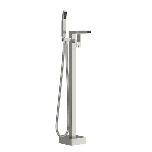 Freestanding Bathtub Faucet Waterfall Tub Filler Floor Mount Solid Brass With Hand Shower - Brushed Nickel