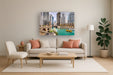 Experience the vibrant energy of the Chicago River captured in this stunning contemporary wall art. Printed on paper and protected beneath durable tempered glass, this piece offers a sleek, glossy finish that enhances the depth and brilliance of the cityscape. Hand-embellished for a unique touch, it features iconic skyscrapers and the serene turquoise waters of the river, making it a captivating focal point for your living room, office, or lobby. Ready to hang with sawtooth hangers, it combines safety, style, and social impact—each purchase donates a meal to a hungry American child.