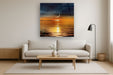 Immerse yourself in the serene beauty of "New Moon Horizon," a captivating piece crafted on durable tempered glass. This contemporary wall art features a striking crescent moon glowing over a tranquil water horizon at sunset, blending deep blues and warm golds to evoke calm and wonder. The artwork is printed and hand-embellished beneath the glass, creating a sleek, dimensional finish that reflects light beautifully. Ready to hang with angled sawtooth hangers, it offers an effortless way to elevate your living room, bedroom, or office. Each purchase also supports a meaningful cause by providing a meal to a hungry American child, making this art both inspiring and impactful.