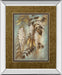Immerse yourself in the tranquil beauty of cascading wisteria blooms with this framed wall art. The delicate white flowers and muted earth tones blend seamlessly with soft blues and golds, creating a serene botanical scene that invites calm and reflection. Encased in a sleek mirrored frame with double matting, this piece not only enhances your décor but also reflects light to brighten any living room, office, or bedroom. Crafted with premium real glass, it offers vivid color clarity and protection, making it a timeless addition that brings nature's elegance indoors. Ready to hang, it effortlessly elevates transitional spaces with its refined charm and subtle sophistication.