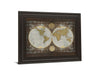 Step into a world of exploration with this vintage globe wall art, where history and artistry converge. The detailed double hemisphere map, accented by smaller polar views, rests on a textured floral background that adds a timeless depth to the piece. Encased in a rich dark chocolate frame, the artwork's warm earth tones come alive under premium real glass, offering both protection and enhanced color vibrancy. Ideal for living rooms, offices, or studies, this framed map invites curiosity and inspires journeys, making it a captivating focal point that celebrates the spirit of discovery and the beauty of our planet.