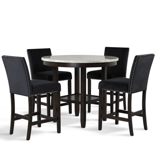 Celeste - Mesa de mostrador con acabado de mármol de 5 piezas de 42" y 4 sillas - Negro