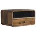 - Curve Upper Slot Floating Bedside - The bigger brother to our original Floating Curve Open Slot Bedside, this minimalistic wall-mounted unit has been constructed from 100% solid mango wood in a finish and features 1 drawer with a shiny knob along with 1 open shelf for storing any bits and pieces you wish to keep close by before bedtime. It's neat and clean design can easily be mounted on the wall without the fuss of any legs. Caution! Do not sit on the unit.