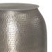 - Features hand hammered detail, Large drum shape with removable top that reveals plenty of storage