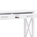 • Features one large drawer with metal drawer glides and an open bottom shelf providing ample storage space.