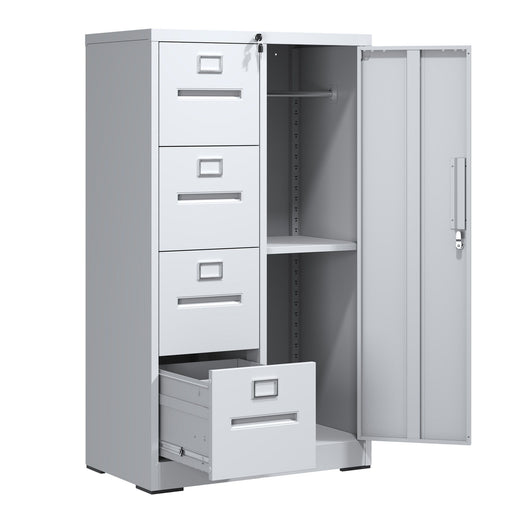 Metal Storage Cabinet With Locking Doors And Adjustable Shelf, Folding Filing Storage Cabinet, Folding Storage Locker Cabinet For Home Office, School, Garage - White