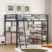 Full Size Loft Bed With 3 Layers Of Shelves And Desk, Stylish Frame Bed - Black