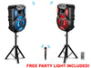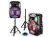 Rechargeable Pair of Wireless 12" Bluetooth LED Speaker Package with Wireless Mic & Party Light