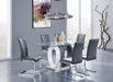 Striking ultra modern design and bold styling this dining table by Global Furniture USA is in a class all by itself. This table boasts a rectangular clear glass top, contrasting oval design supports and stainless steel base with a polished chrome finish. Add this to your dining area and it will be the topic of conversation with all your guests.