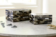 This mosaic patterned box set is a masterful interpretation of neutral hues. A stylish habitat to hide your tiny treasures, the set can store jewelry and accessories (along with other odds and ends), keeping clutter off the tops of your dressers and accent tables.