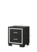 This bedroom collection strikes a balance between bold and classic styles. It features a striking bed with a high, channel tufted headboard that commands attention. The accompanying case goods, including a dresser with a mirror, chest, and nightstand, are all finished in a sharp, black hue that adds depth and modernity to any bedroom. Each piece is accented with sleek metal handles that contrast beautifully against the dark finish. The clean lines and uncluttered design of the furniture allow for versatile placement in a variety of interior styles, from contemporary to transitional.