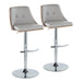 Gianna - Mid-Century Modern Adjustable Barstool With Swivel With Rounded T Footrest (Set of 2) - Chrome / Walnut / Light Gray