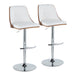 Gianna - Mid-Century Modern Adjustable Barstool With Swivel With Rounded T Footrest (Set of 2) - Chrome / Walnut / White