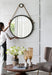 - Design and Shape: Contemporary circular mirror with a round metal frame, perfect for modern decor.