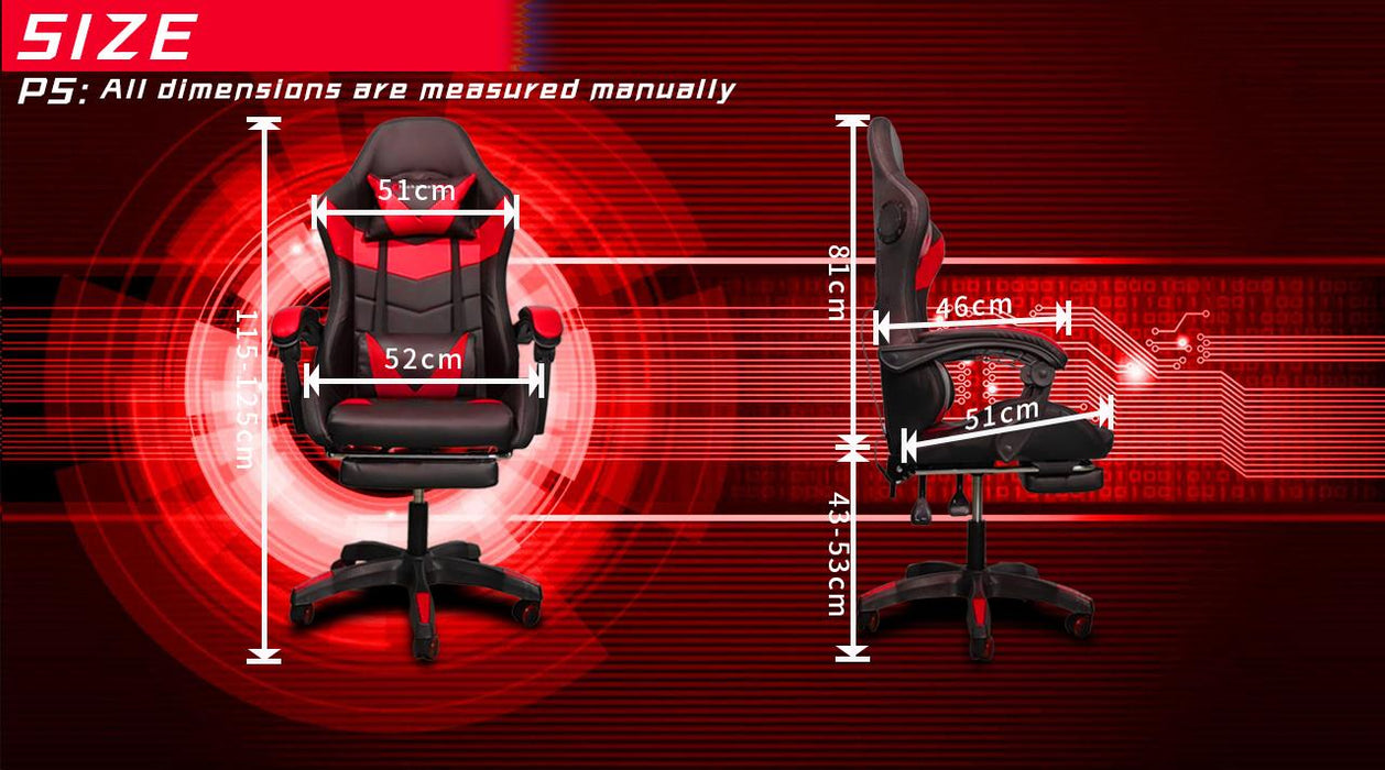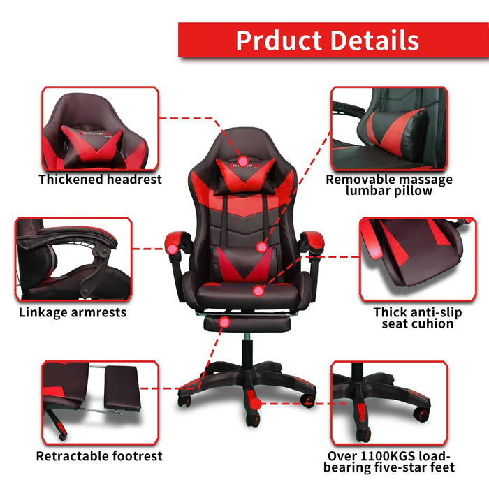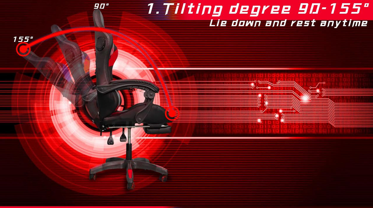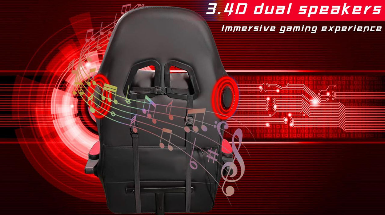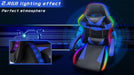 Enjoy your gaming experience with this LED Gaming Chair. It features vibrant RGB LED lighting that can be customized with remote, plus built-in Bluetooth speakers and a leg rest. Experience ultimate comfort while you play!