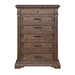 • Rich Walnut Finish: The heirloom finish is achieved through a multi-step process that includes mild distressing, wire brushing, and charcoal glazing that enhances the natural beauty of the wood.